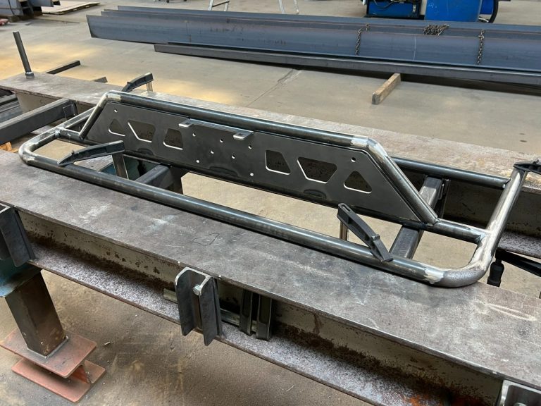 Gleichzeitig musste die kippbare Ladefläche weiterhin uneingeschränkt nutzbar bleiben. Entsprechend wurde die Konstruktion so ausgelegt, dass ausreichend Bewegungsfreiheit erhalten bleibt und keine Kollisionen oder Einschränkungen im Betrieb entstehen.
